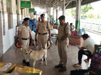 RPF police personnel check trains and platforms at Jolarpet railway station in Tirupattur. | Photo Credit: SPECIAL ARRANGEMENT As part of Deepavali... Read More