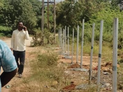 HYDRAA personnel erecting fencing around the 38 acre land in Pet Basheerabad in Qutbullahpur mandal of Medchal Malkajgiri district on Wednesday |... Read More