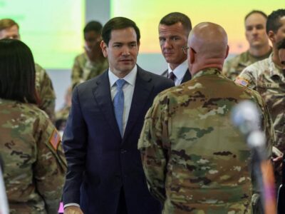 U.S. Secretary of State Marco Rubio speaks with U.S. military personnel as he visits the Civil-Military Coordination Center in southern Israel, October... Read More