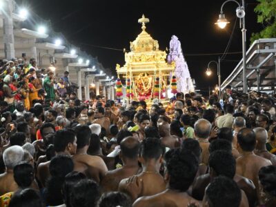 Thousands of devotees participate in the golden car procession that was held at Subramania Swamy Temple in Tiruchendur on Friday night. |... Read More