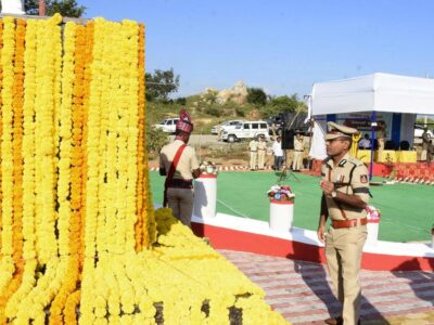 Deputy Inspector-General of Police, North Eastern Region, Shantanu Sinha paying his respects at the police memorial in Yadgir on Tuesday. | Photo... Read More