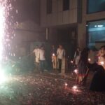 Employees of a private company burst crakers on Quenees Road for Deepavali. File