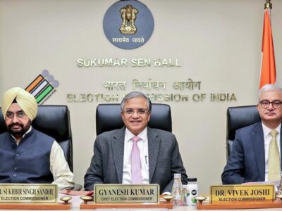 Chief Election Commissioner Gyanesh Kumar, Election commissioners Sukhbir Singh Sandhu and Vivek Joshi announcing the election schedule for Bihar Assembly. | Photo... Read More
