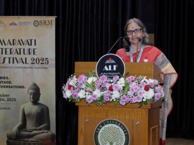 Telugu writer and poet Popuri Lalita Kumari speaking at the inaugural session of Amaravati Literature Festival at SRM University-AP, in Guntur district... Read More