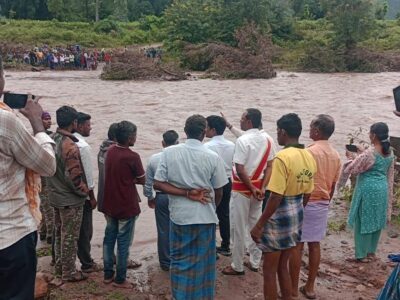 Revenue officials inspect flooded river at Kuttaiyur in Erode district