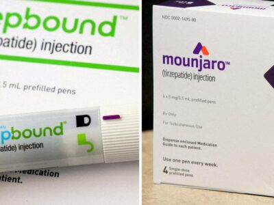 A combination image shows an injection pen of Zepbound, Eli Lilly’s weight loss drug, and a box of Mounjaro, a tirzepatide injection... Read More