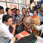 BRS working president K.T. Rama Rao speaking to a doctor at Ibrahim Nagar Basti Dawakhana in Hyderabad on Tuesday.