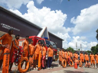 APSDRF personnel were deployed from Mangalagiri to Ongole in view of the Cyclone Montha warnings on October 26, 2025. | Photo Credit:... Read More