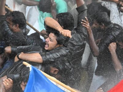 The police using water cannons to disperse AIYF and AISF activists who march towards Education minister V. Sivankutty’s office in Thiruvananthapuram on... Read More