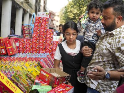 People shop for green firecrackers ahead of the ‘Diwali’ festival, near Jama Masjid in New Delhi, Thursday, Oct. 16, 2025. | Photo... Read More