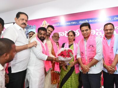 BRS working president K.T. Rama Rao welcoming several senior leaders into the BRS fold at Telangana Bhavan on Sunday. Bharat Rashtra Samithi... Read More