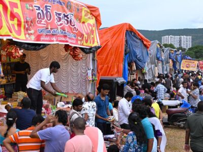 People rush to buy fireworks at the cracker stalls, set up at the AU Engineering grounds in Visakhapatnam on Sunday. | Photo... Read More