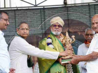 Noted ayurvedic physician Dr. K. Gopalan Ravindran being felicitated by spiritual orator Chaganti Koteswara Rao (left) and others at the Dhanvantri Jayanthi... Read More