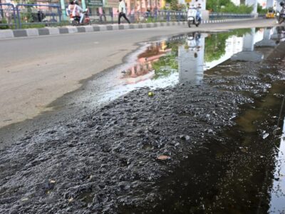 Stagnating sewage on New Natham Road near Reserve line junction in Madurai on Sunday. | Photo Credit: R. ASHOK To reduce high... Read More