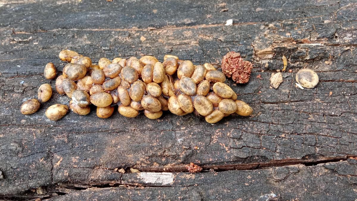 Civet scat, scat of the Asian palm civet, found on a fallen log.