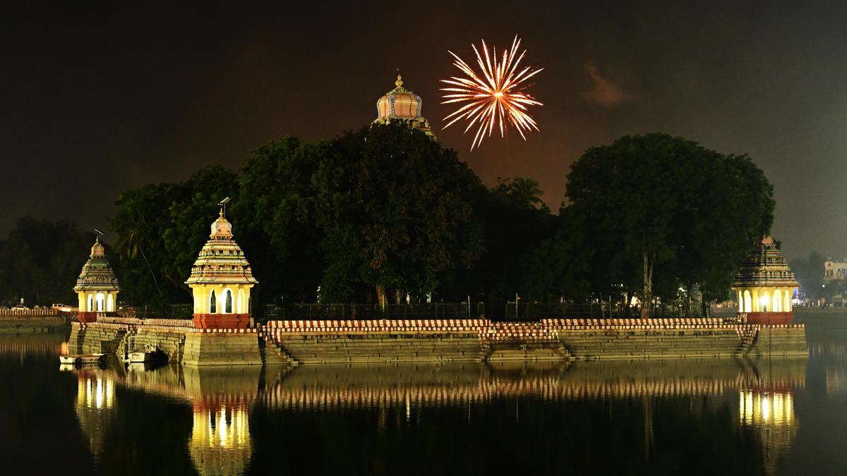 Firecrackers lighting up Madurai sky on the eve of Deepavali.