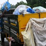 The heavy rain that lashed many parts of the city posed difficulties in collection of garbage. In spite of the tough working conditions, the workers carried out the cleaning drive.