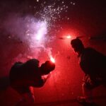 People celebrating Deepavali with crackers in New Delhi on October 20, 2025.