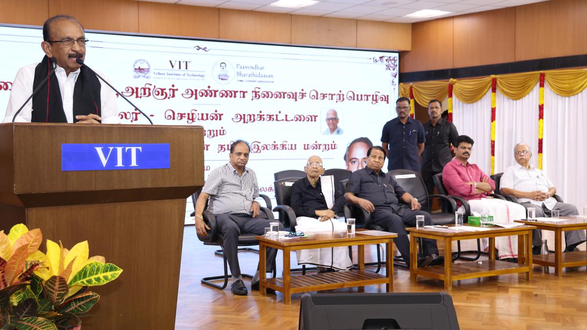 In his presidential address at the annual memorial lecture in honour of Dravidian stalwarts ‘Periyar’ E.V. Ramasamy and former Chief Minister C.N. Annadurai, jointly organised by Navalar-Sezhiyan Foundation and Pavendar Bharathidasan Tamil Literary Forum at VIT campus in Vellore, he said that Tamil Nadu is an excellent example where steady growth in education and economic activity has gradually reduced divisions created on the lines of caste and religions to a large extent.