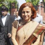 Gitanjali Angmo, wife of climate activist Sonam Wangchuk, leaves the Supreme Court after a hearing in New Delhi. File