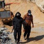 Heavy machinery operates at a site where searches for deceased hostages kidnapped by Hamas during the October 7, 2023, attack on Israel are underway amid a ceasefire between Israel and Hamas, in Khan Younis, southern Gaza Strip, on October 19, 2025.