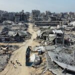 A drone view shows the destruction in a residential neighbourhood, amid a ceasefire between Israel and Hamas in Gaza, in Gaza City, on October 19, 2025.