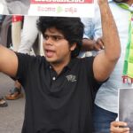 Aditya, son of BRS MLA Kavitha, and grandson of former CM K. Chandrashekhar Rao at a political protest in Hyderabad on Saturday (October 18).