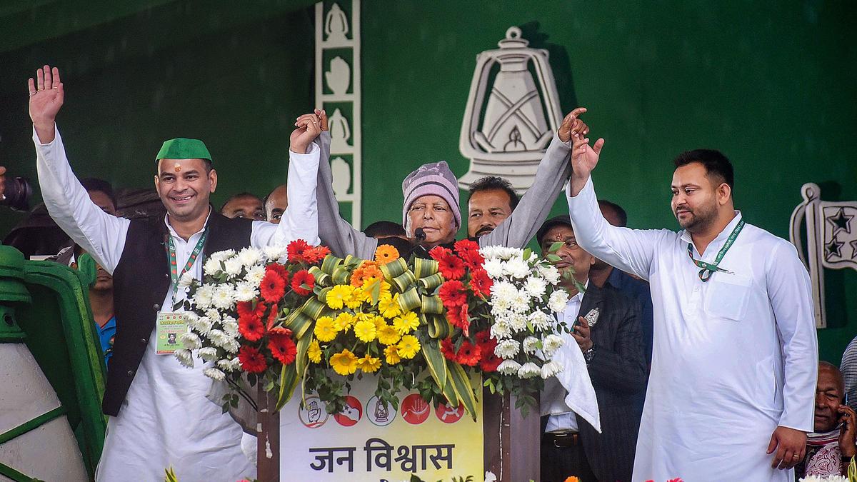 On nomination filing day on October 15, Mr. Tejashwi Yadav’s entire family was present: his parents Mr. Lalu Prasad and Ms. Rabri Devi, his older sister Misa Bharti who is also an RJD MP in the Sabha, and close aide and MLA Bhola Yadav. All were missing when Mr. Tej Pratap Yadav filed his own papers a day later in the neighbouring Mahua constituency.