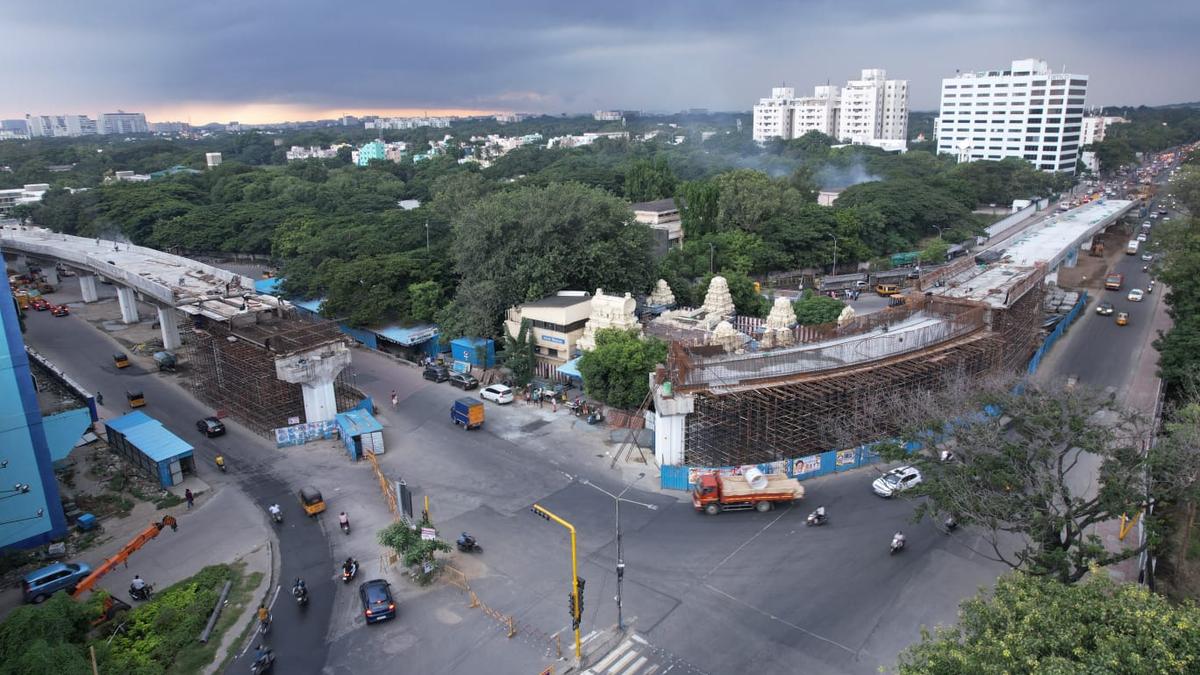 “We are awaiting police permission to construct the final span, the crucial one over the junction and one that is 35 metre-long. We need to divert four lanes of incoming traffic into two lanes. We are seeing if additional space can be obtained from the MRTS station. If the weather permits, we hope to finish the work by December,” explained a source in the Highways Department.