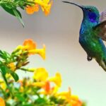 A hummingbird feeds in Boquete, Panama. Hummingbirds are known for their ability to hover by flapping their wings 15 to 80 times per second, depending on the bird’s size.