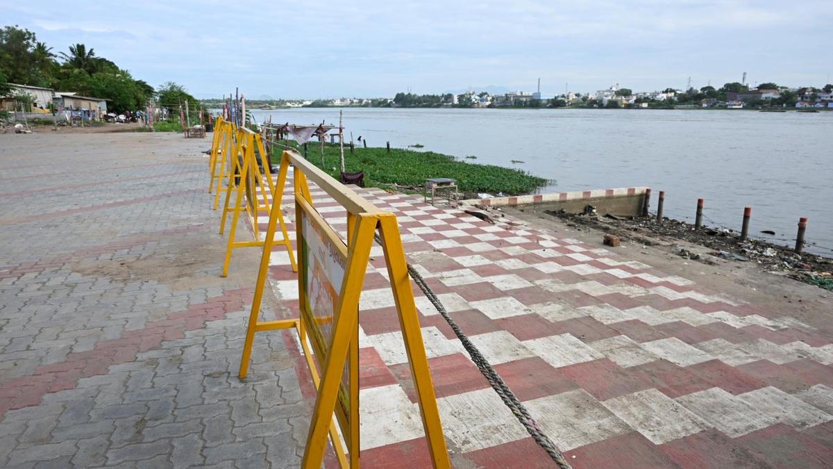 The Cauvery enters the district at Nerinjipettai and flows for 84 km through Ammapettai, Bhavani, Karungalpalayam in Erode city, and Kodumudi before crossing into Karur district. To ensure public safety, barricades have been erected at the Karungalpalayam bathing ghat, and announcements are being made through public address systems to warn residents. Similar alerts have been issued in Ammapettai, Bhavani, and Kodumudi, advising people to stay alert and be ready to move to relief centres if required.