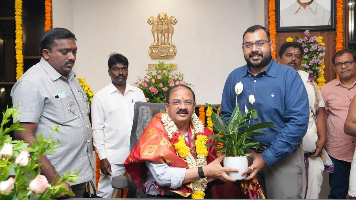 APCRDA Commissioner K. Kannababu after occupying his chambers at the newly constructed CRDA headquarters in Amaravati on Thursday. Amidst the chanting of hymns from the Vedas, Commissioner of the Andhra Pradesh Capital Region Development Authority (APCRDA) K. Kannababu formally started functioning from the newly-constructed CRDA headquarters in Amaravati on Thursday. Additional Commissioner A. Bhargava Teja... Read More