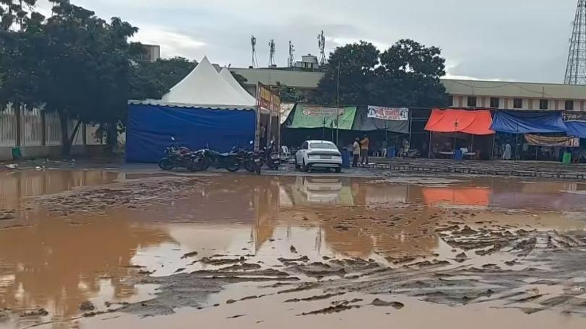 The stalls of firecrackers look empty while the area was stagnated with rain water at VRC Grounds in Nellore on Monday. | Photo Credit: HANDOUT Continuous rains across South Coastal Andhra Pradesh (SCAP) since Sunday have dampened the festive spirit of middle-class youth and children, who eagerly await burning firecrackers during Deepavali. Last-minute buyers were... Read More