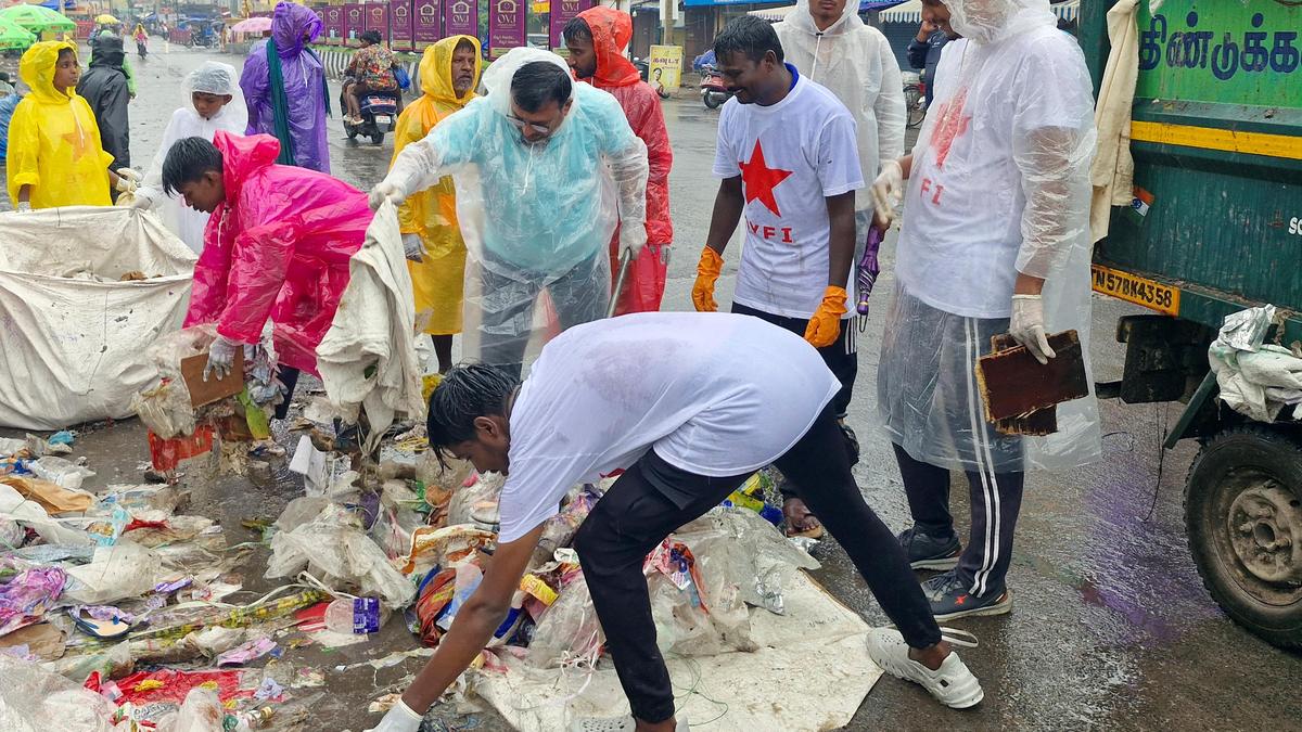 MP R. Sachithanantham, along with DYFI cadres, helping sanitation workers remove garbage near Clock Tower in Dindigul on Tuesday. | Photo Credit: G. Karthikeyan About 50 cadres of the Democratic Youth Federation of India (DYFI) in Dindigul district on Tuesday helped conservancy workers clear the garbage which had accumulated during Deepavali celebration. The Corporation Health... Read More