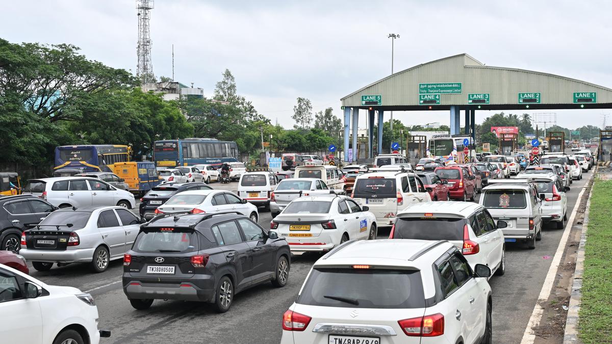Cars, buses, and two-wheelers queued up several hundred metres, particularly on the Thanjavur–Tiruchi stretch. Toll staff and police opened all lanes to ease the flow.