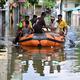 The police department has put up a banner prohibiting residents of Anjaneyar Koil Street at Consalpet in Vellore city from entering the stagnant rainwater on October 24, 2025. Fire and Rescue Services personnel evacuated the residents.