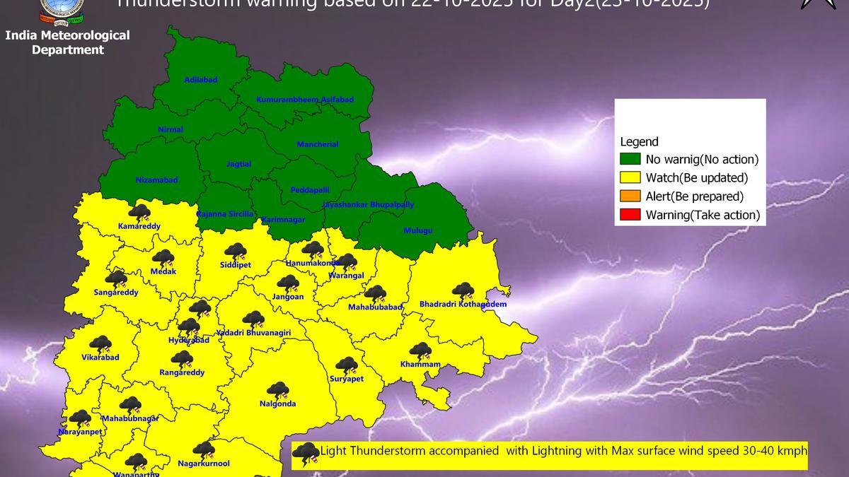 Thunderstorm forecast in 22 Telangana districts on October 23