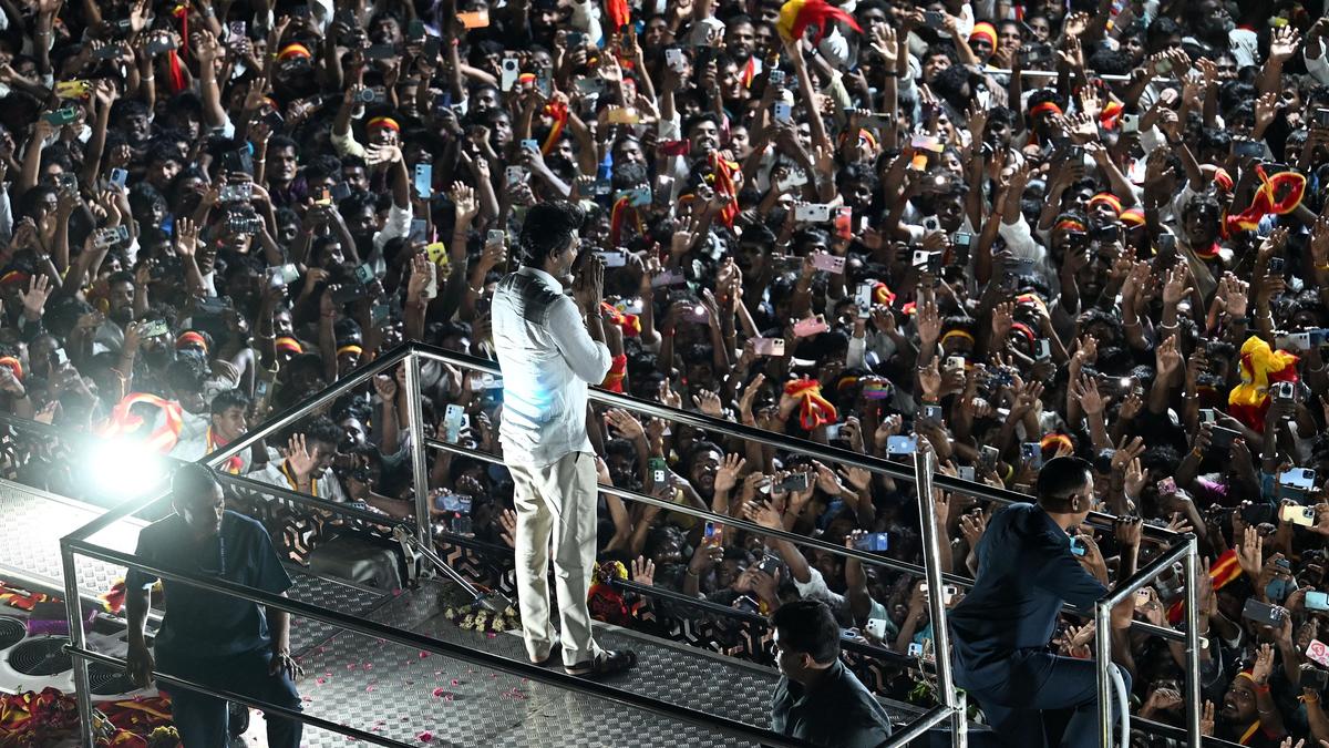 TVK president and actor Vijay at the rally in Karur where 41 people lost their lives in a stampede. File