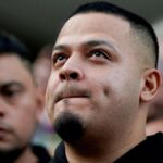 Kilmar Abrego, the migrant whose wrongful deportation to El Salvador made him a symbol of U.S. President Donald Trump’s aggressive immigration policies, appears for a check-in at the ICE Baltimore field office three days after his release from criminal custody in Tennessee, in Baltimore, Maryland, U.S., on August 25, 2025.