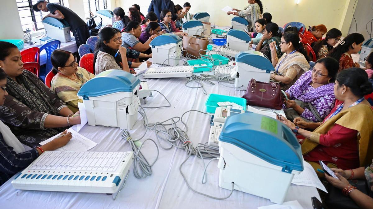 Election officials attend a mock poll during a training session ahead of the Bihar Assembly elections, in Patna.