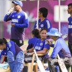 Indian women team during a practice session ahead of the Women Cricket World Cup 2025 match against New Zealand in Navi Mumbai.