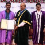 A student receiving his degree from Magesh Ethirajan, Director-General, Centre for Development of Advanced Computing (C-DAC) at the convocation ceremony at SRM Institute of Science and Technology, Tiruchi on Saturday.