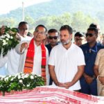Lok Sabha LoP Rahul Gandhi, along with APCC president Gaurav Gogoi, pays tribute to Late singer Zubeen Garg at Sonapur, in Guwahati on October 17, 2025. File